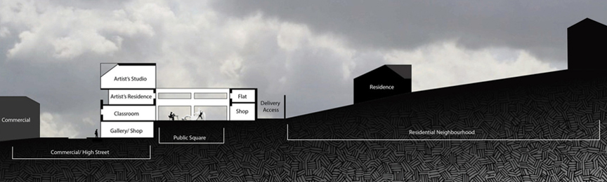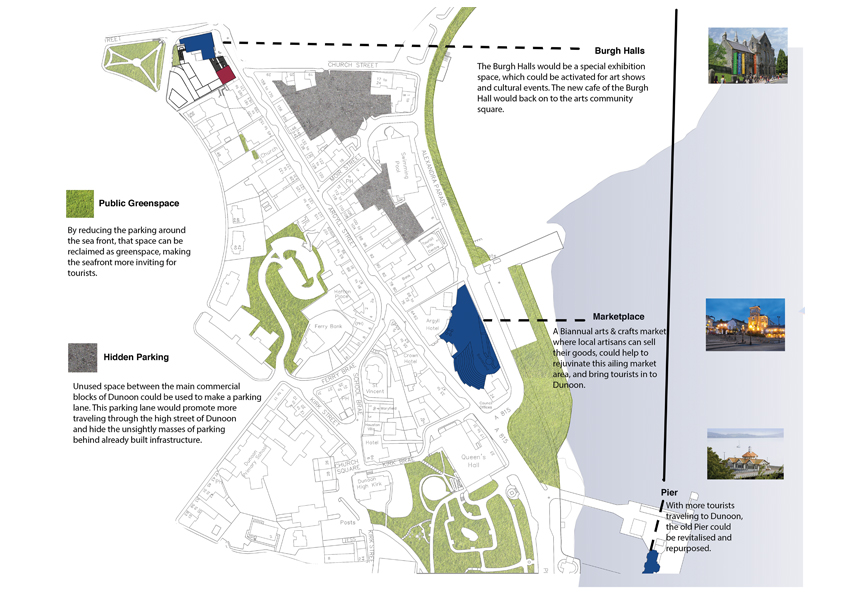 The Burgh Halls, that sits adjacent to the proposed site, is currently undergoing renovation to become an exhibition and café space; for my project I proposed opening up the site for use as an artists community, where local artist and craftspeople could share their talent and create an entire new cultural economy within the small town. I further identified locations throughout the town that could be activated throughout the year for arts and crafts markets as well as art festivals.